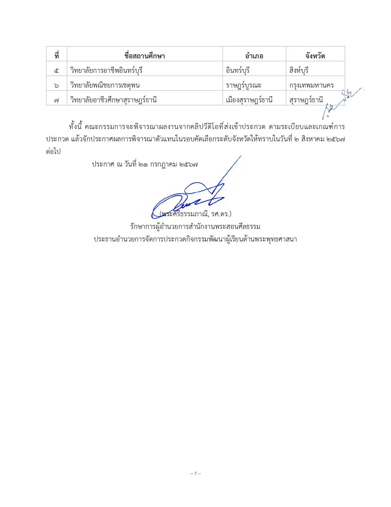 ประกาศรายชื่อสถานศึกษาที่มีสิทธิ์เข้ารอบคัดเลือกระดับจังหวัด ในกิจกรรมการกล่าวคำอาราธนาและถวายทานในพุทธศาสนพิธี
