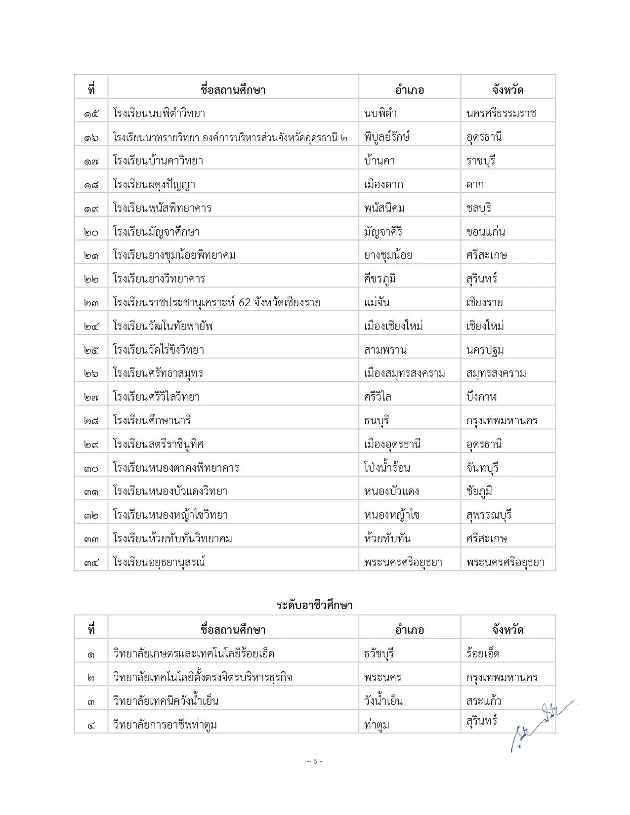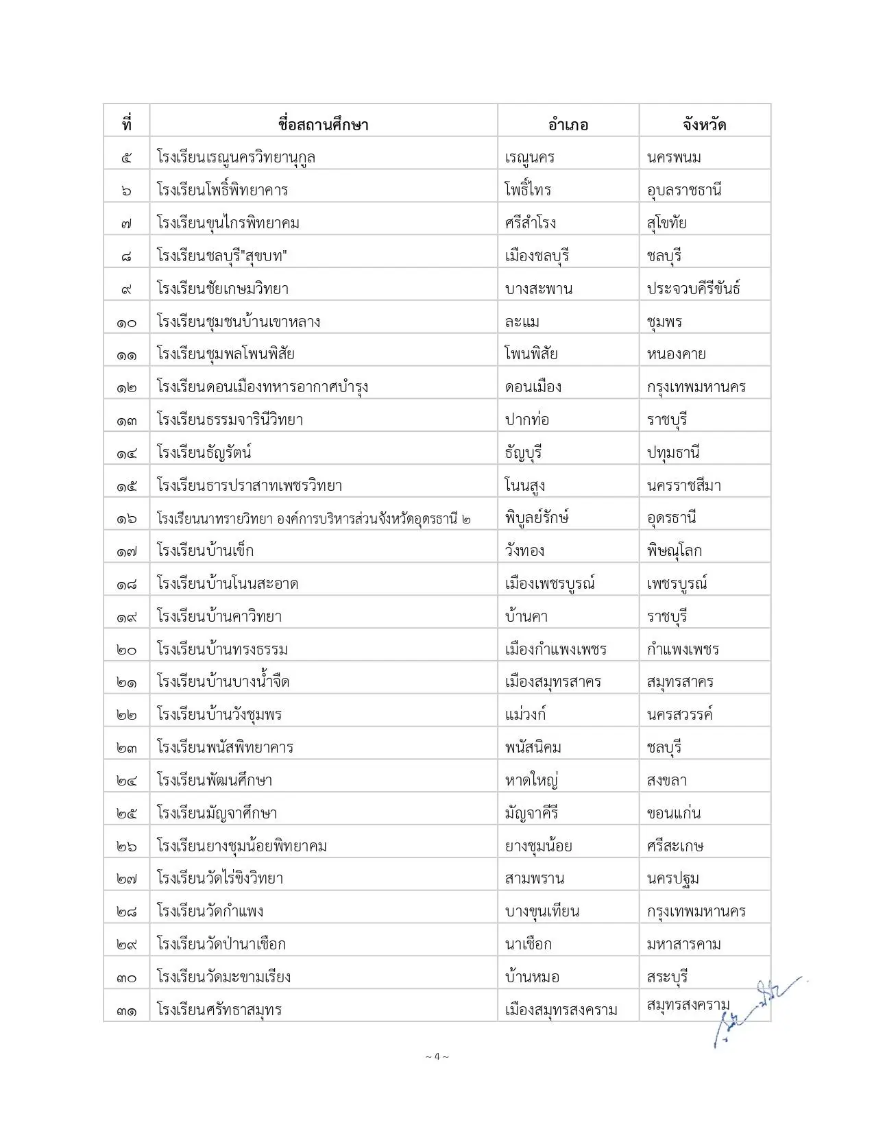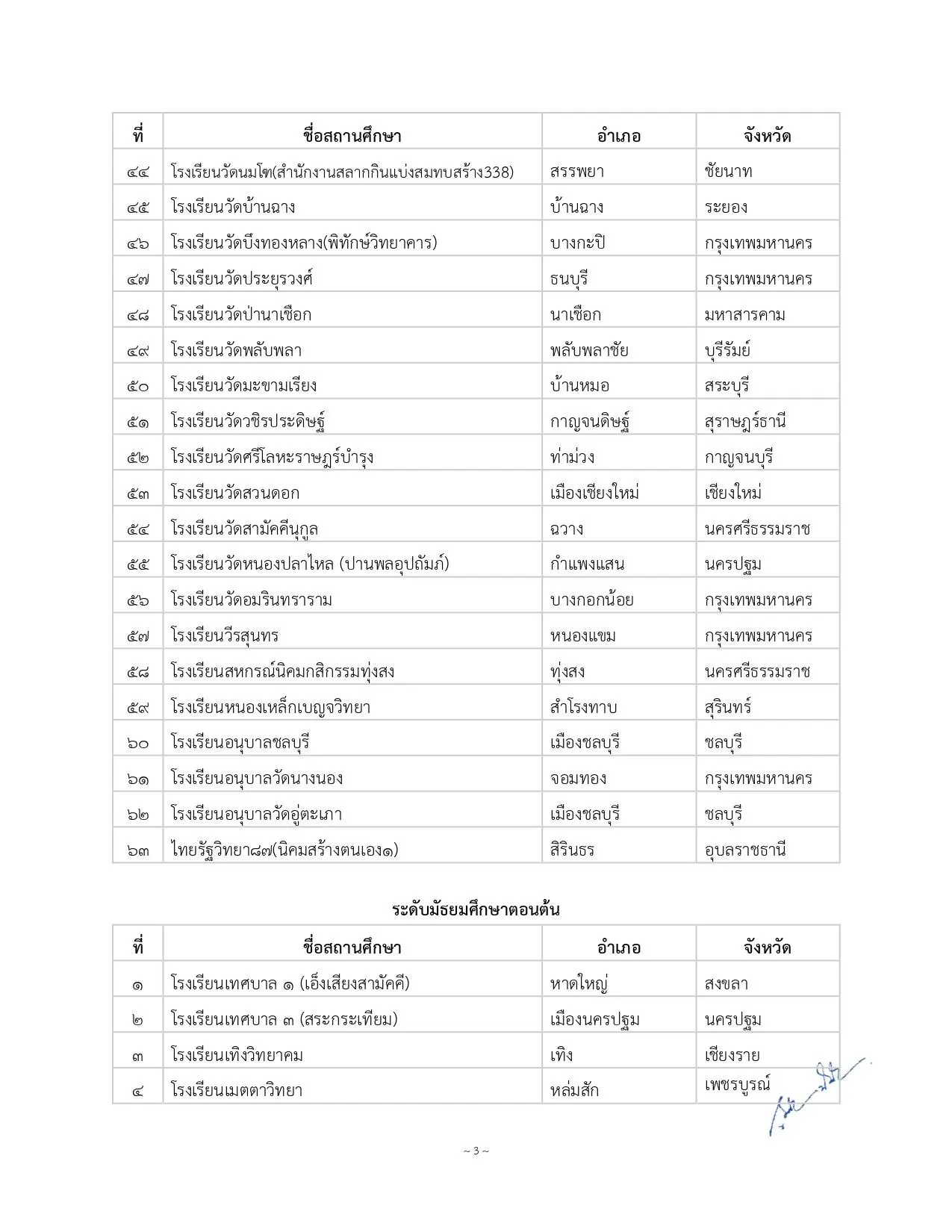 รายชื่อสถานศึกษาที่มีสิทธิ์เข้าพิจารณาผลงาน รอบแรก (คัดเลือกระดับจังหวัด) กิจกรรมการกล่าวคำอาราธนาและถวายทานในพุทธศาสนพิธี  ดังมีรายชื่อต่อไปนี้